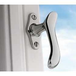 Die hochglänzende Vernickelung des Fensterbeschlags hat einen schönen, warmen Silberton, der sich neutral zu verschiedensten Einrichtungsstilen verhält. Zudem schützt diese Oberfläche vor Korrosion, wenn keine Patinierung wie bei der Messing-Variante gewünscht ist.