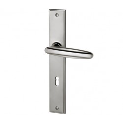 Ein Türgriff, der durch seine stilvolle Profilierung ins Auge fällt. Das Design stellt ein Bindeglied zwischen Jugendstil und Art Déco, bzw. dem späteren Bauhaus-Stil dar. Die Grundform ist eine schlichte Ellipse mit guter Ergonomie, die Front ziert das, durch parallel laufenden Linien hervorgehobene Mittelstück. Das Modell ist trotz seiner klaren Formen sehr anspruchsvoll in der handwerklichen Produktion und wir freuen uns, Ihnen ein solches Highlight in unserem Sortiment anbieten zu können.