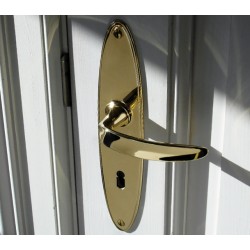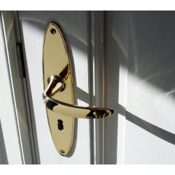 hierDurch den goldenen Messingfarbton hat die Drückergarnitur eine warme, noble Ausstrahlung. Zudem unterstreicht er den historischen Charakter des Türdrückers. Dies natürlich umso mehr, wenn der Beschlag im Laufe der Zeit Patina ansetzen darf.